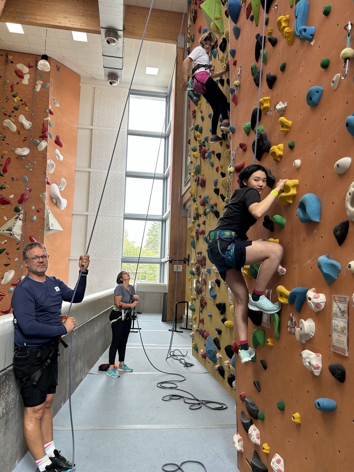 Regelmäßig findet in der Schule ein Kletterprojekt statt. Hierzu wird die Kletterhalle des Deutschen Alpenvereins genutzt. Unterschiedlich hohe Wände mit verschiedenen Schwierigkeitsgraden und ein riesiger Boulder-Raum (Bouldern ist klettern ohne Sicherung in niedriger Höhe.) laden zum Klettern ein. Schülerinnen und Schüler, die nicht in der Lage sind, eigenständig zu klettern, können am Seil ein Stück in die Höhe gezogen werden, in ihrem Klettergurt schaukeln und aus einer neuen Perspektive ihre Umgebung wahrnehmen. Motorisch geschicktere Schülerinnen und Schüler erhalten jede Menge neuer Anregungen und Herausforderungen. Die Möglichkeiten der Kletterhalle sind so vielfältig, dass für jeden etwas dabei ist und die Größe der Halle erlaubt es allen gleichzeitig aktiv zu sein.